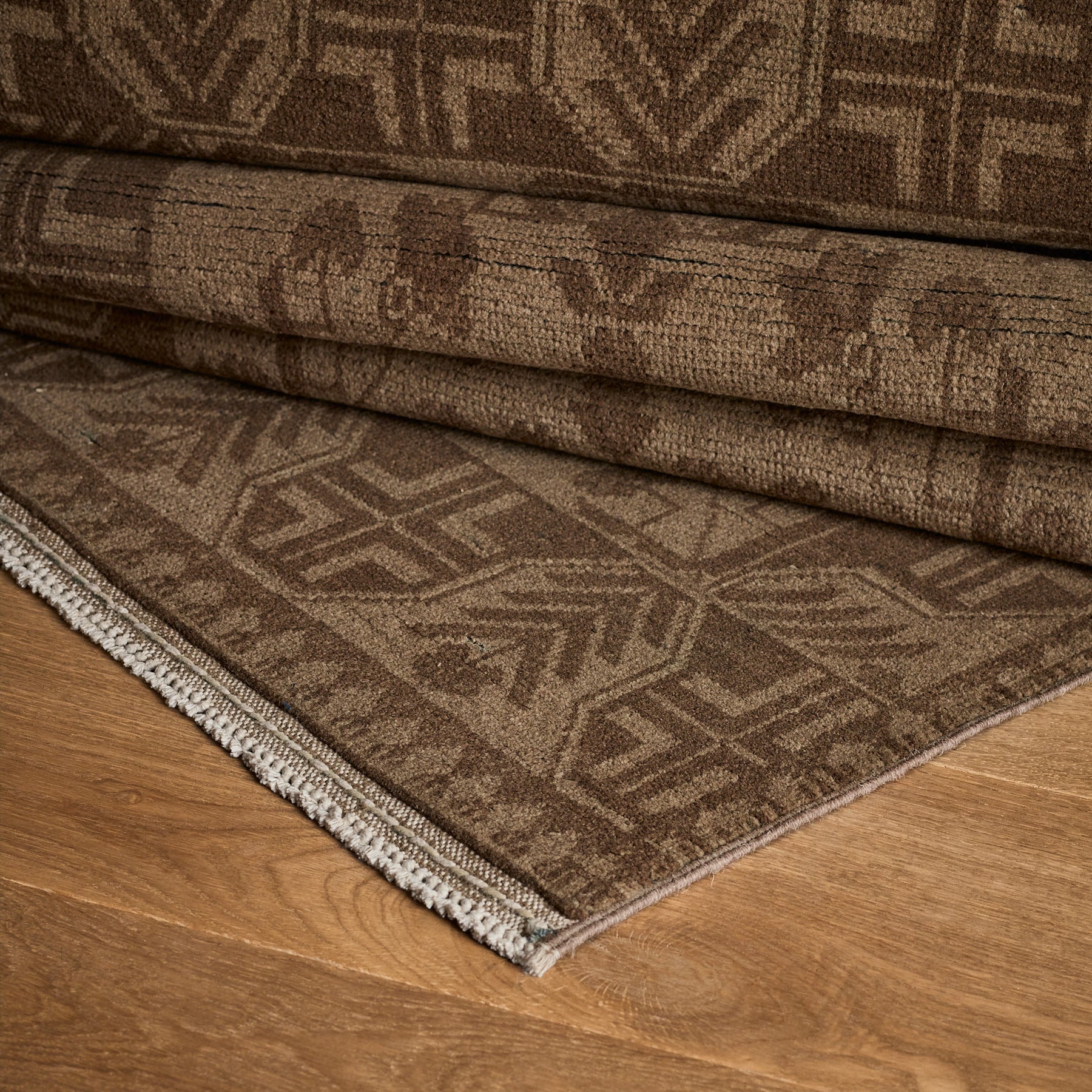 Le tapis Sarima est un tapis luxueux et unique construit à partir de 100% de laine et d'une base en coton. Magnifiquement noué à la main et fabriqué par des artisans locaux, ce tapis aux accents bruns apportera chaleur et raffinement à tout espace.
