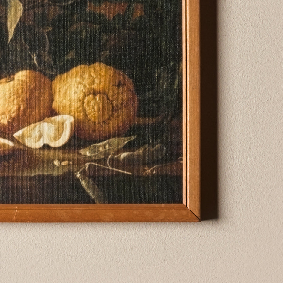 Citrus est une œuvre d'art murale unique montée à la main, composée d'un cadre en bois massif et d'une toile imprimée. Soigneusement sélectionnés un à un par notre équipe, Citrus présente un encadrement vintage et une toile neuve représentant une œuvre d'art classique, mêlant l'ancien et le nouveau pour créer une composition magistrale.