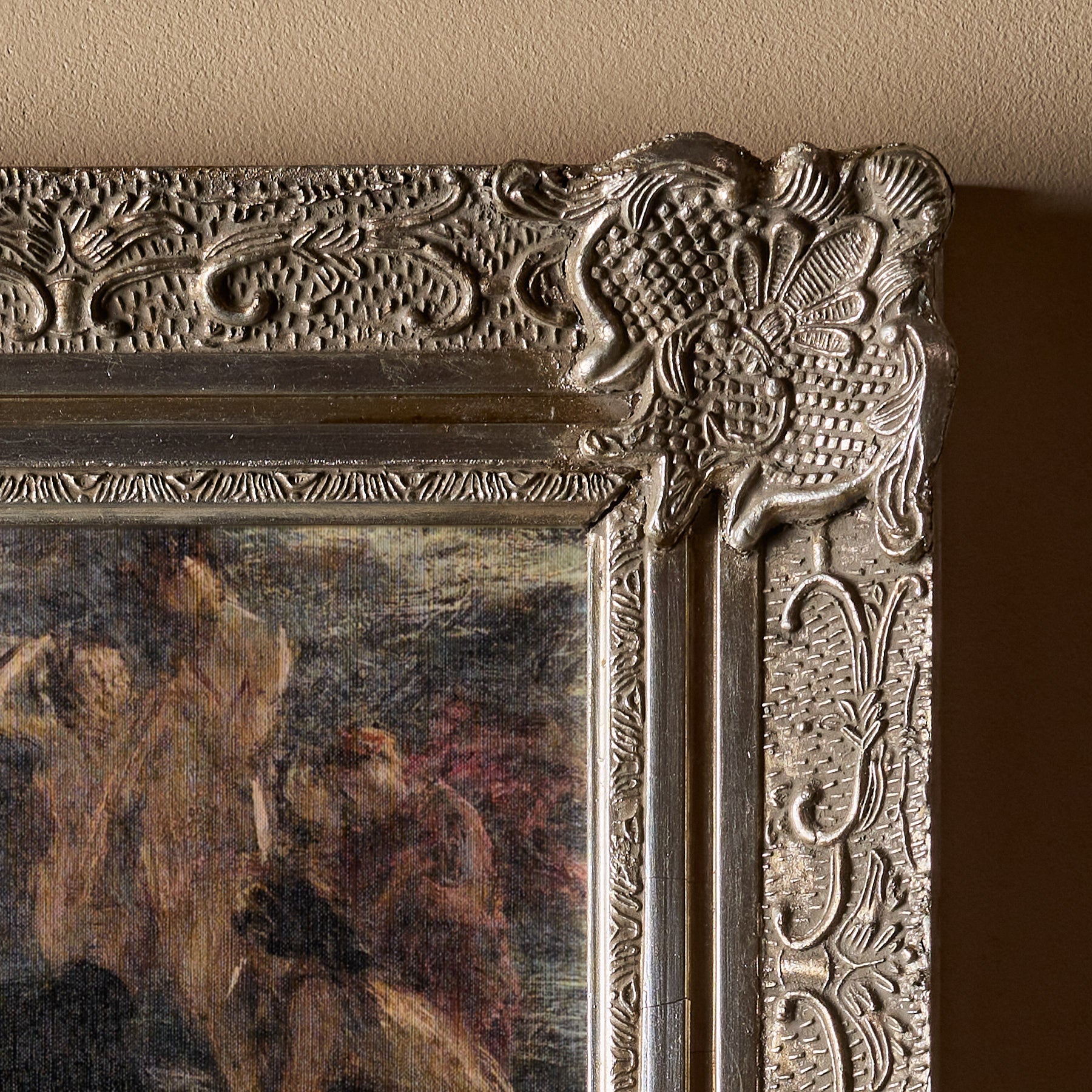 Les cadres eux-mêmes sont 100% vintage. Par contre, la toile qui se trouve à l'intérieur est une nouvelle impression. Nous sélectionnons avec soin des œuvres d'art de différents artistes et les associons à des cadres vintage pour créer une œuvre d'art unique et magnifique. Chaque composition est faite à la main.