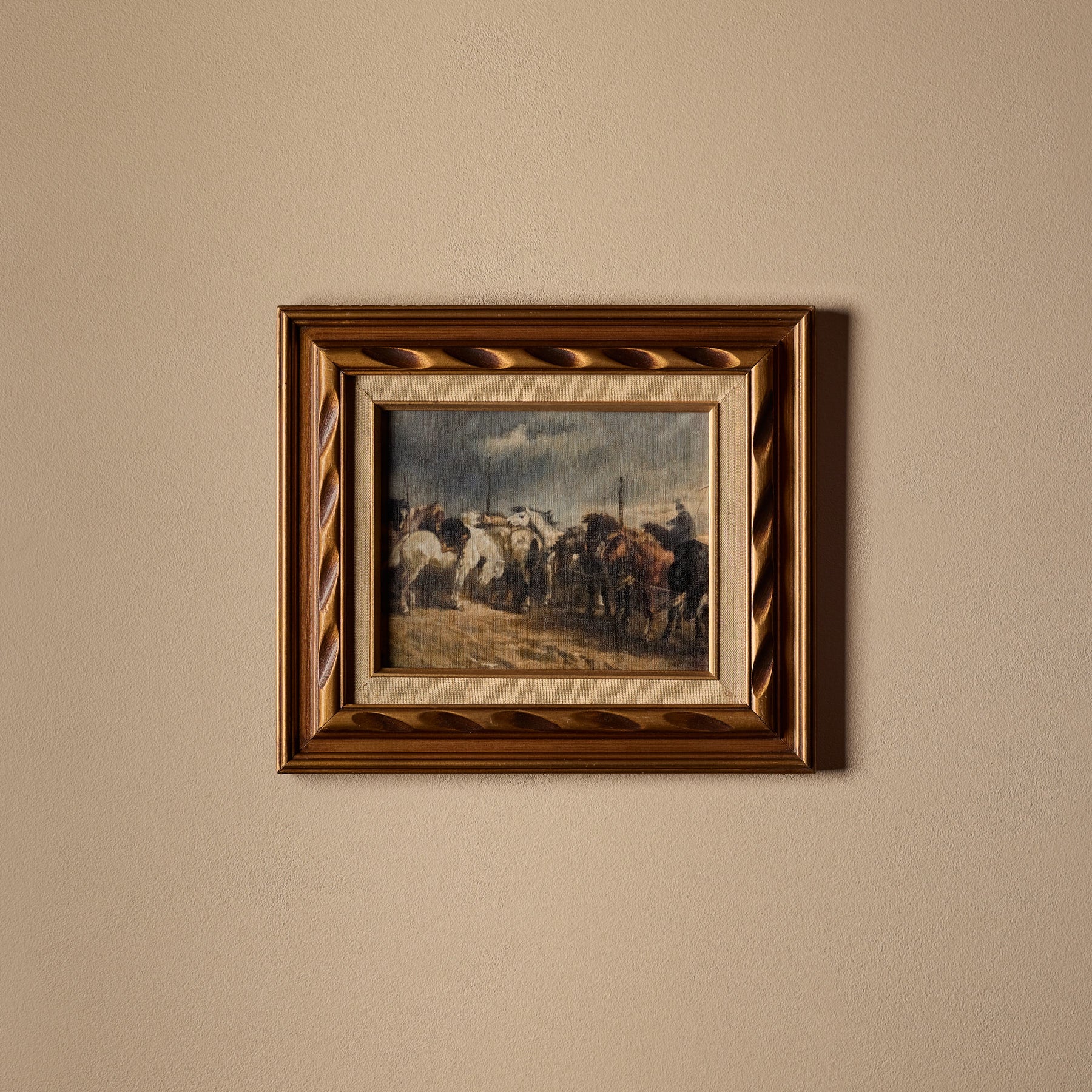 Les cadres eux-mêmes sont 100% vintage. Par contre, la toile qui se trouve à l'intérieur est une nouvelle impression. Nous sélectionnons avec soin des œuvres d'art de différents artistes et les associons à des cadres vintage pour créer une œuvre d'art unique et magnifique. Chaque composition est faite à la main.