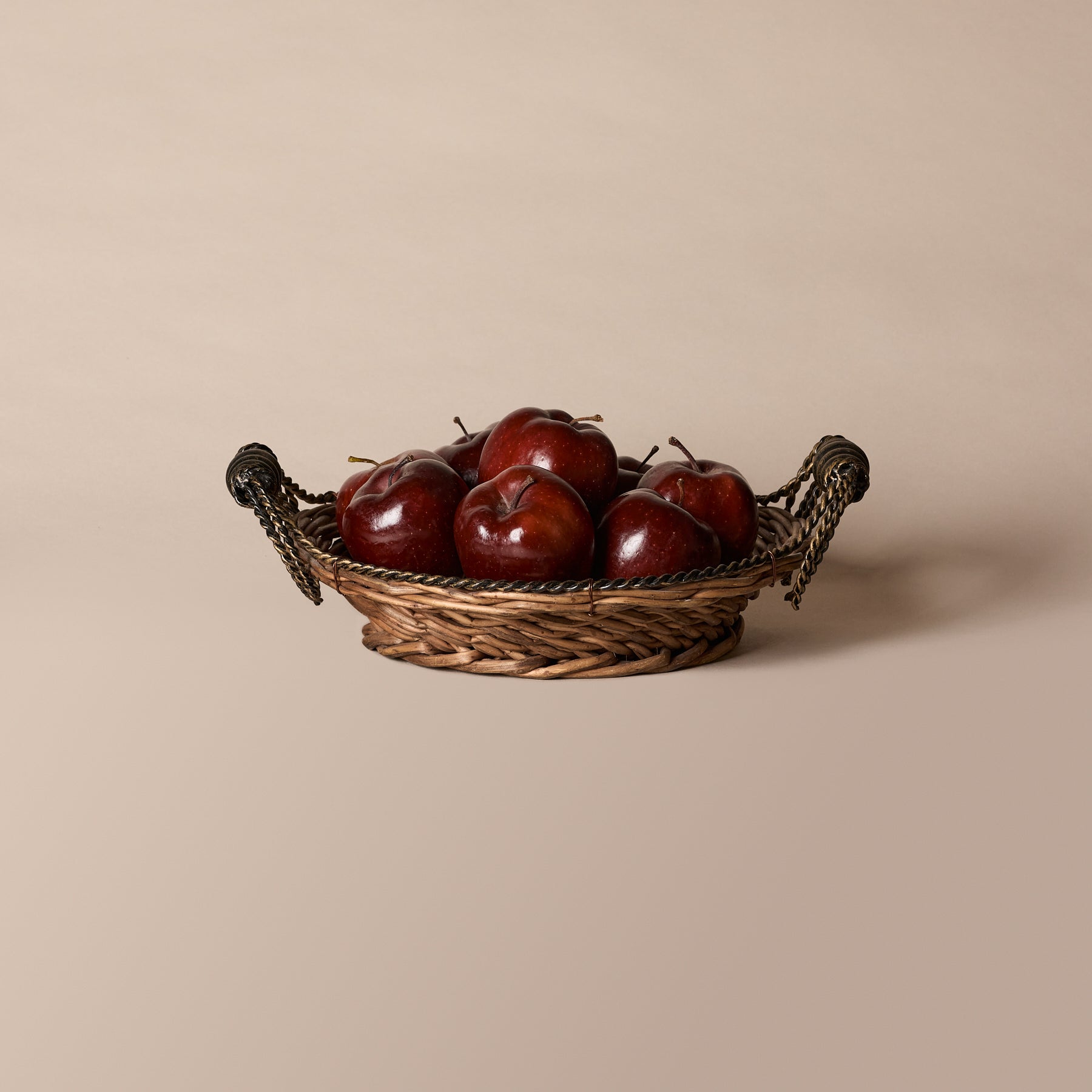* Les pommes ne sont pas incluses. Les fils de cuivre sont enfilés dans l'osier pour fixer les détails métalliques en place.