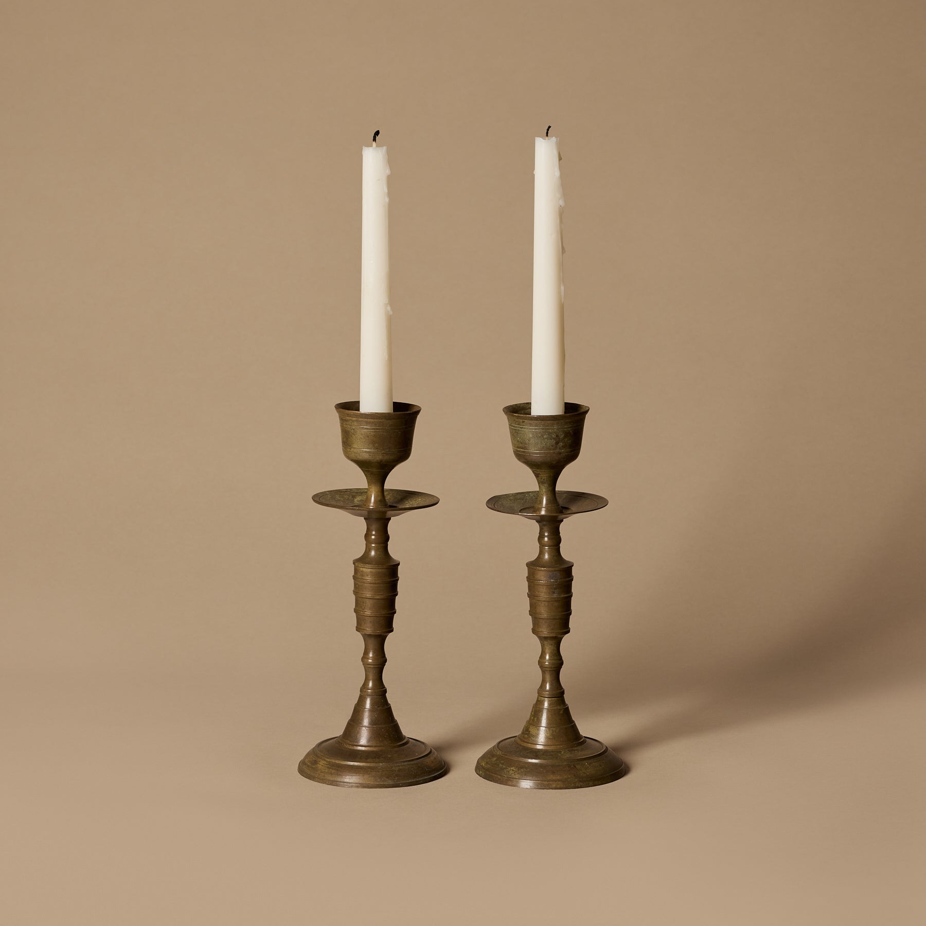 Paire de bougeoirs anciens en laiton tourné