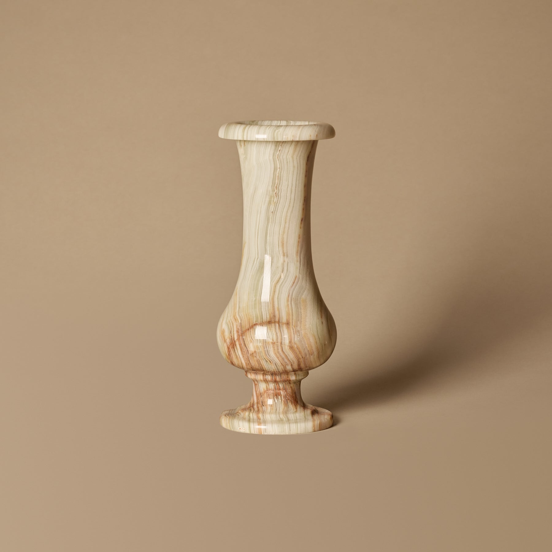 Ajoutez une touche d'élégance à votre décor avec notre vase à piédestal en onyx. Tous nos objets sont soigneusement sélectionnés un par un par notre équipe, tant au Canada qu'à l'étranger. Chaque pièce incarne la signature intemporelle et élégante de Blanc Marine.