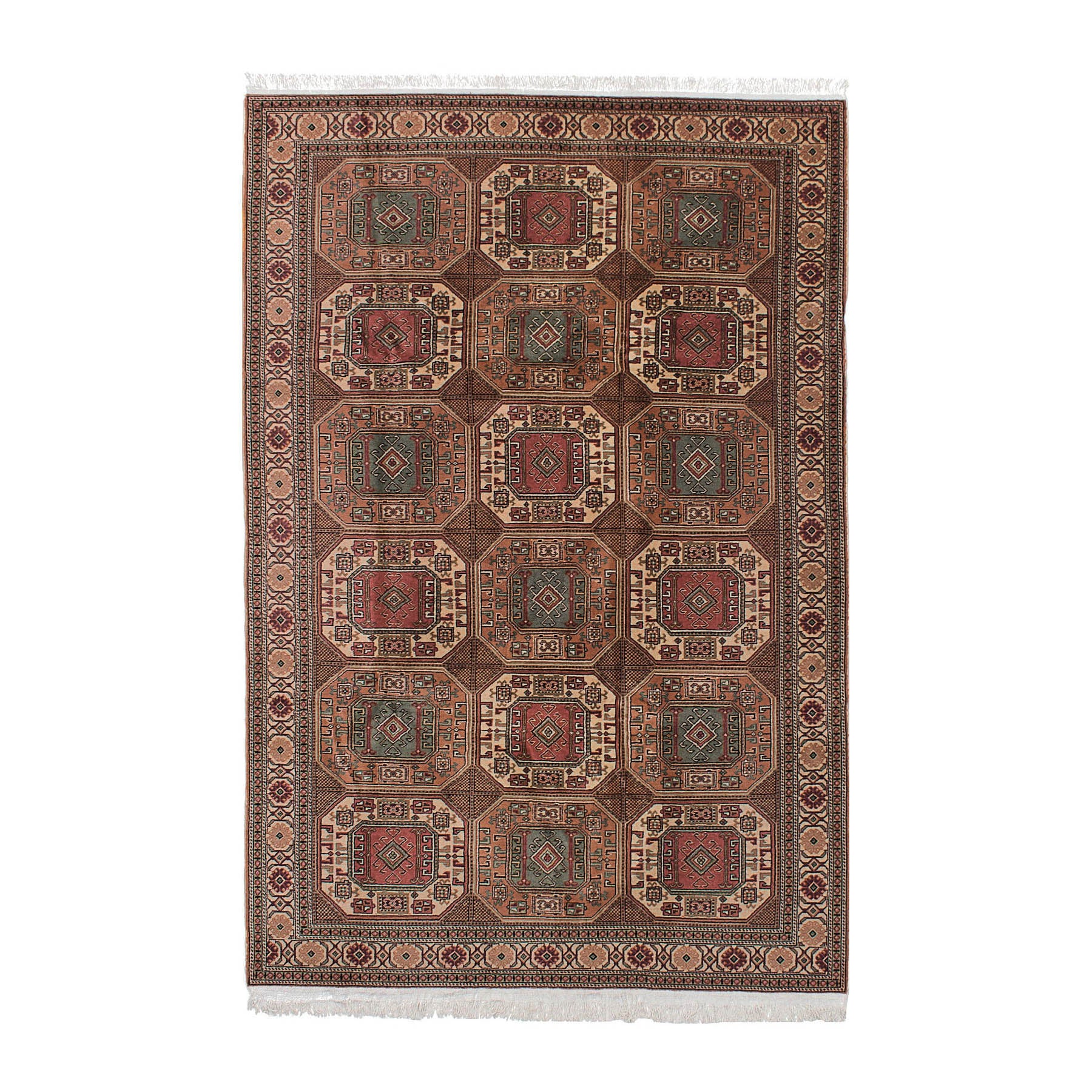 Le tapis Alissa est un tapis luxueux et unique composé à 100% de laine et d'une base en coton. Magnifiquement noué à la main et fabriqué par des artisans locaux, ce tapis aux accents cuivre foncé, cuivre, ivoire, beige, olive, bordeaux, noir, tan et sarcelle apportera chaleur et raffinement à tout espace.