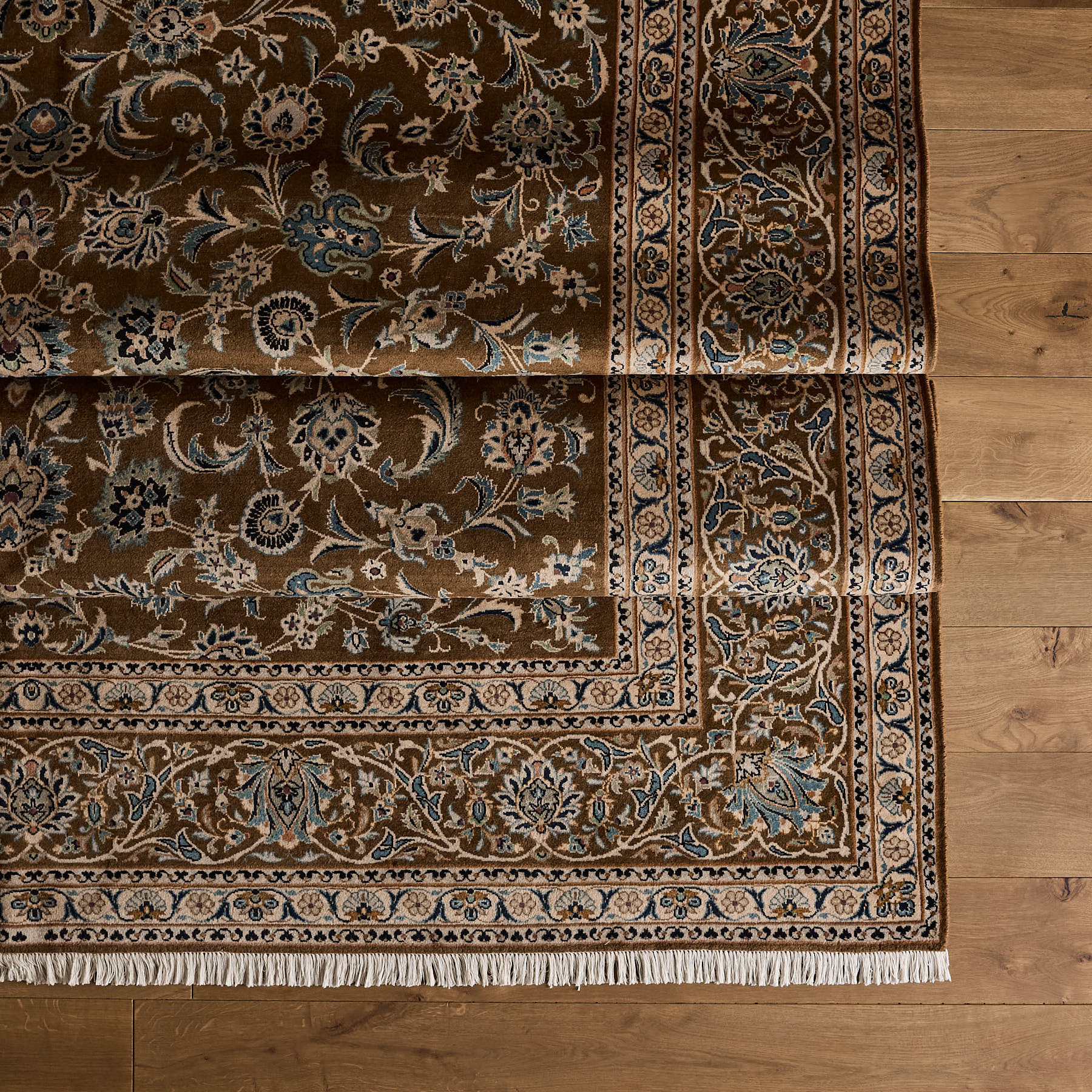 Le tapis Fari est un tapis luxueux et unique composé à 100% de laine et d'une base en coton. Magnifiquement noué à la main et fabriqué par des artisans locaux, ce tapis aux accents olive, bleu, marron, ivoire, marine foncé, bleu clair, vert clair, saumon et rouge apportera chaleur et raffinement à n'importe quel espace.