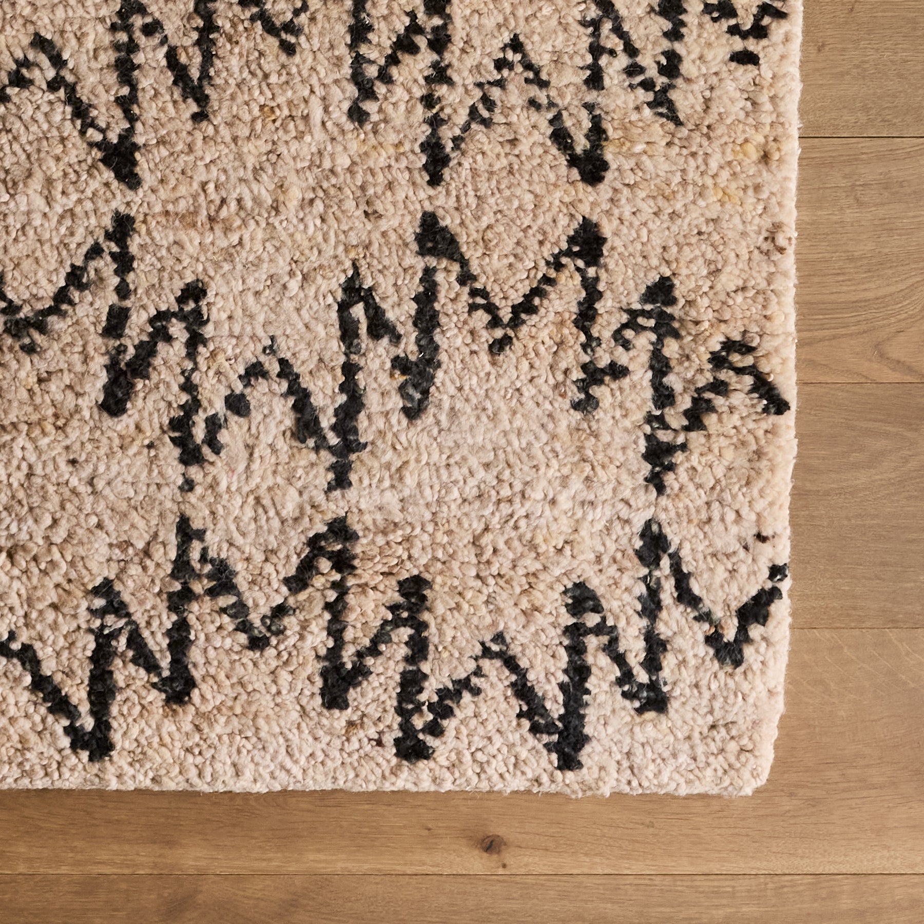 Le tapis Sammie est un tapis luxueux et unique composé de 100% de laine et d'une base en coton. Magnifiquement noué à la main et fabriqué par des artisans locaux, ce tapis aux accents beiges et noirs apportera chaleur et raffinement à tout espace.