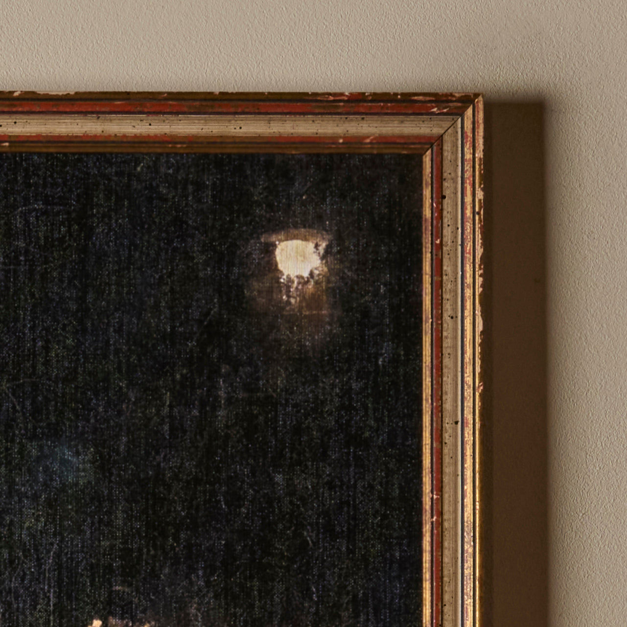 Les cadres eux-mêmes sont 100% vintage. Par contre, la toile qui se trouve à l'intérieur est une nouvelle impression. Nous sélectionnons avec soin des œuvres d'art de différents artistes et les associons à des cadres vintage pour créer une œuvre d'art unique et magnifique. Chaque composition est faite à la main.