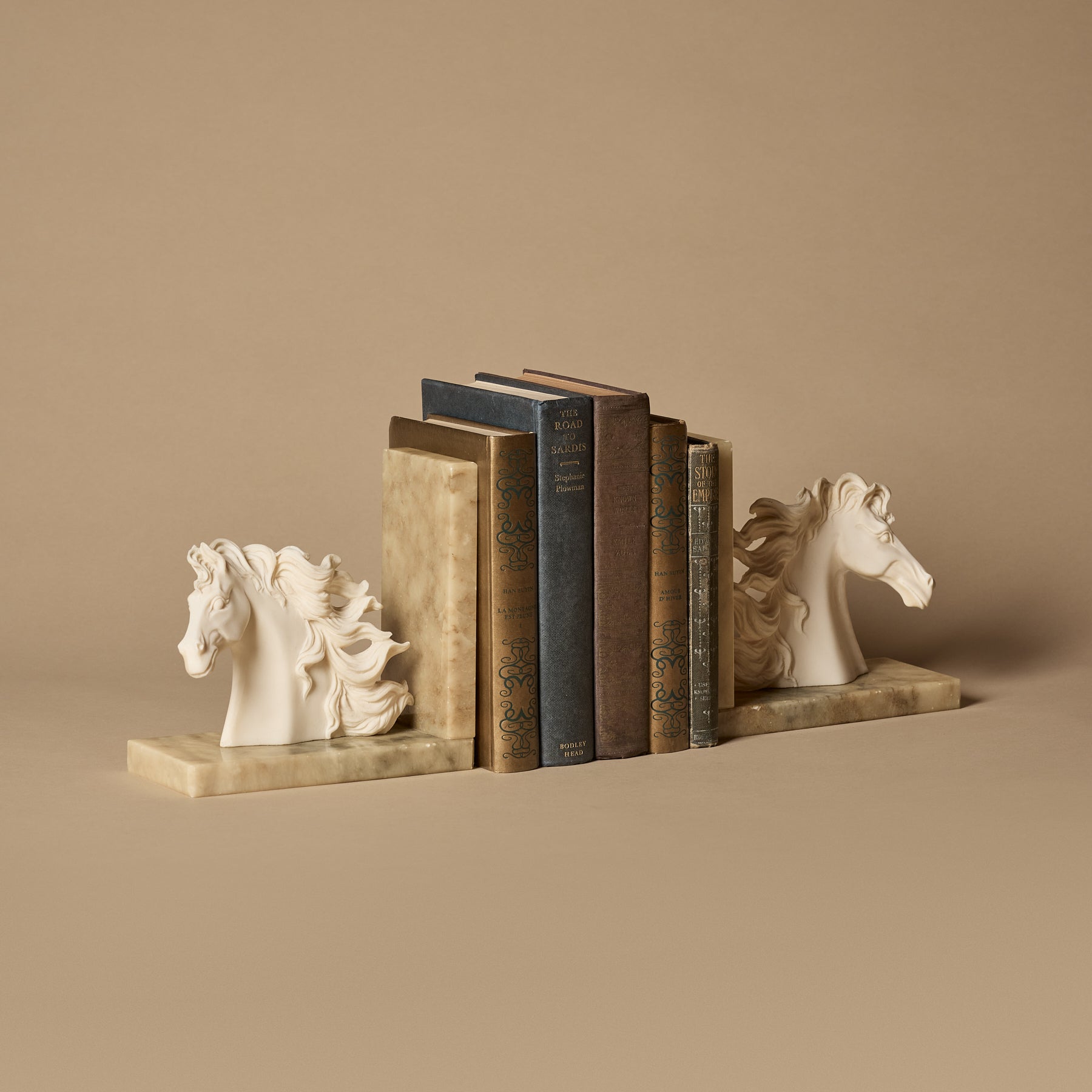 Ajoutez une touche d'élégance à votre décor avec nos serre-livres en albâtre de cheval signé G. Carussi. Tous nos objets sont soigneusement sélectionnés un par un par notre équipe, tant au Canada qu'à l'étranger. Chaque pièce incarne la signature intemporelle et élégante de Blanc Marine.