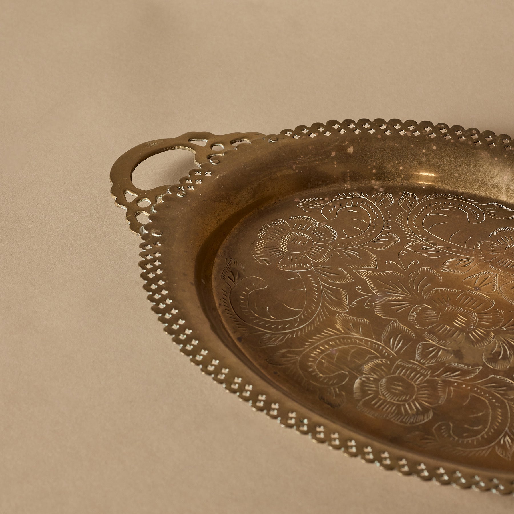Ajoutez une touche d'élégance à votre décor avec notre plateau de service floral vintage en laiton gravé. Tous nos objets sont soigneusement sélectionnés un à un par notre équipe, tant au Canada qu'à l'étranger. Chaque pièce incarne la signature intemporelle et élégante de Blanc Marine.