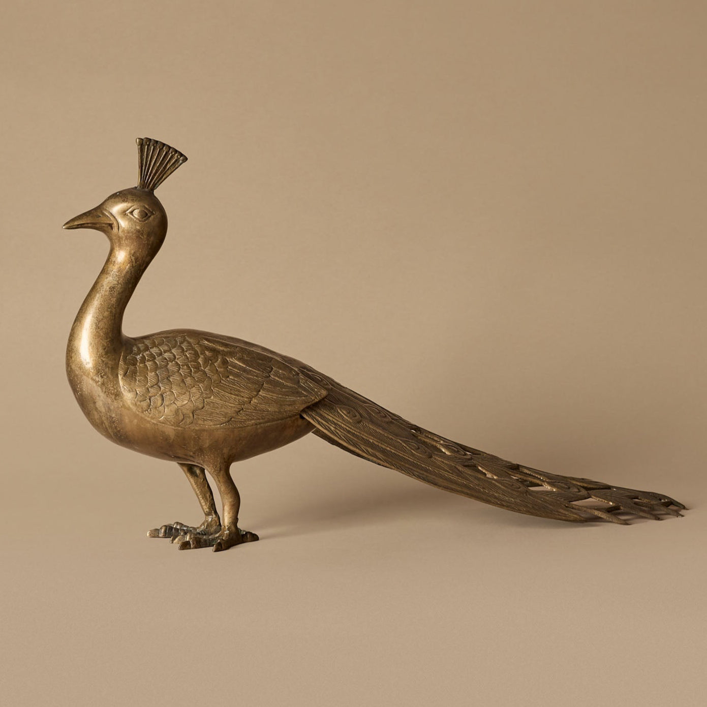 Ajoutez une touche d'élégance à votre décor avec notre grande sculpture de paon vintage en laiton du milieu du siècle. Tous nos objets sont soigneusement sélectionnés un par un par notre équipe, tant au Canada qu'à l'étranger. Chaque pièce incarne la signature intemporelle et élégante de Blanc Marine.