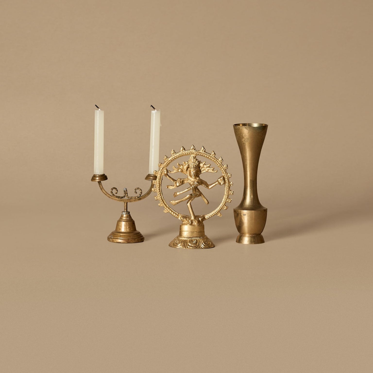 Mini bougeoir ancien avec figure de Shiva et vase