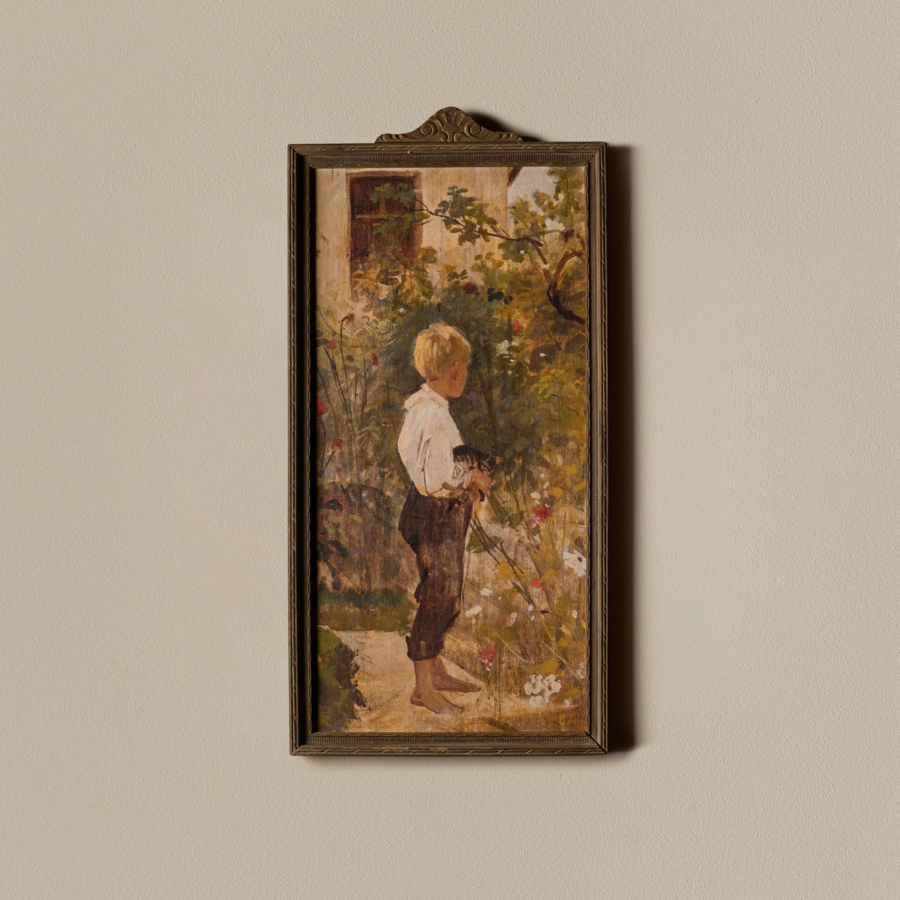 Jules et son chat is a one-of-a-kind hand mounted wall art made from a solid wood frame and a printed canvas. Carefully curated by us, Jules et son chat features a vintage framing and a fresh new print of a classic artwork, mixing old and new to create a masterful composition.