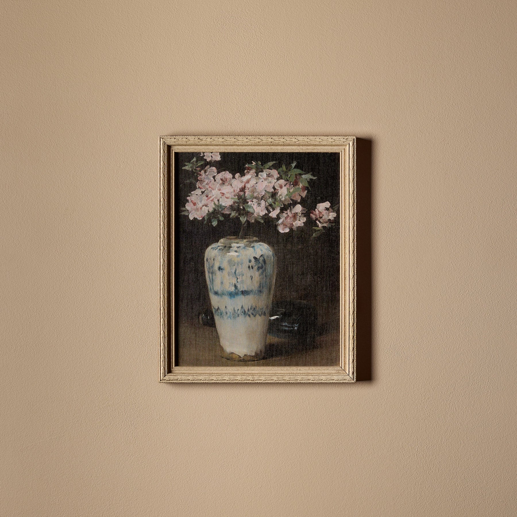 Fleurs et porcelaine is a one-of-a-kind hand mounted wall art made from a solid wood frame and a printed canvas. Carefully curated by us, Fleurs et porcelaine features a vintage framing and a fresh new print of a classic artwork, mixing old and new to create a masterful composition.