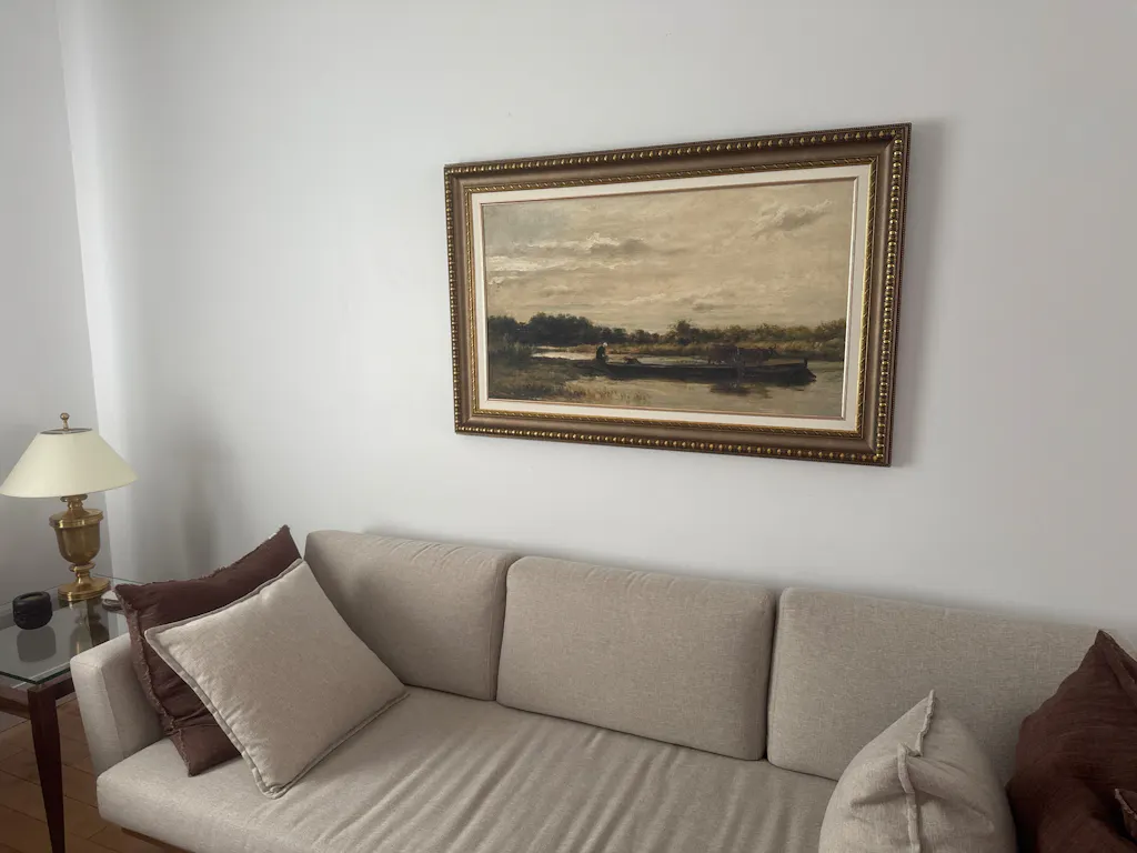 The frames themselves are 100% vintage. However, the canvas inside features a new print. We carefully curate artworks from various artists and pair them with vintage frames to create a unique and beautiful piece of art. Each composition is handmade.